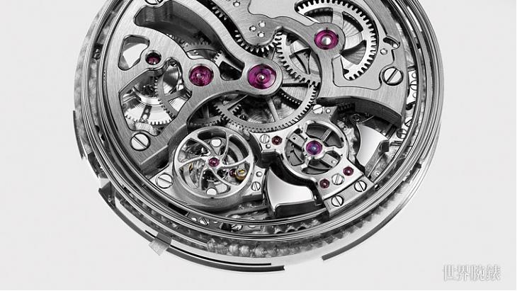 复杂机芯的零件结构是外观设计以外的一大看点,除了透明底盖之外,鏤空面盘也提供藏家全面鑑赏的空间,无论是音锤与音簧、陀飞轮或是计时装置都尽收眼底。