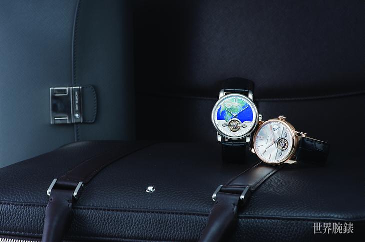 '15年为了向航海冒险家Vasco da Gama致敬,万宝龙将地图图案移植至表盘上,象徵他横越南北半球之旅。'16年相近的设计再度重现于4810 ExoTourbillon Slim 110 Years Edition之上,灵感源自横渡大西洋的黄金年代,叁款表作分别以北美、亚洲和欧洲大陆为创作主题,将微型地图人手绘制于盘面上,渐层的色彩在蔚蓝海洋与宏伟陆地上扩展。除了12点的标誌外,时分二针也做了镶空设计,留下大幅空间成为拟真地图的工艺舞台。腕表搭载MB 29.24自动机芯,首次搭载饰以扇形「日内瓦波纹」图样的微型摆陀亮相,为机芯及腕表带来「瘦身」效果,达至机芯4.5mm及整表10.14mm的厚度。而在「日内瓦波纹」基板饰纹中的外置陀飞轮,具有快速停秒装置,在不影响陀飞轮框架的情况下,可在瞬间掣停摆轮,避免摆轮继续摆动而影响腕表的精准度。