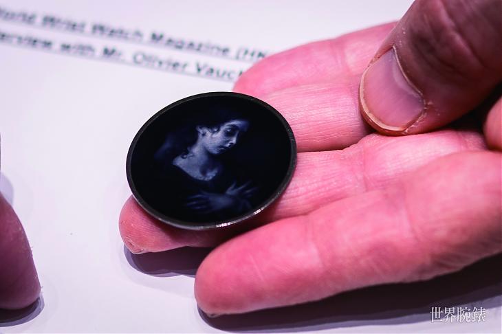 两款时计作品都是由Olivier Vaucher负责雕刻,妻子Dominique Vaucher则负责上色及进行彩绘珐琅工序,这样的分工使金雕与彩绘之间的关系更加紧密,制成品也更加叫人满意。Olivier Vaucher在访谈间即场展示採用渐变珐琅技法的陶瓷板于灯光之下的效果,看似朴实平实的陶瓷板一旦放于灯光之下,马上变得立体而清晰,犹如魔法般叫人讚嘆。同时,他亦指出制作Arceau Tigre腕表时的艰辛:「单是研究就花了很长的时间,要一直尝试不同的深浅情况所呈现出来的效果,做出的十个成品当中,可能只有一个是令人满意、符合预期效果的,而要制成一个,需要大约一星期的时间,整个过程非常漫长。但即使是非常细微的误差或些许令人不满意的地方,我都会马上改善调整,希望可以带来更为完美的作品,再现草稿中老虎的生动。」事实上,採用渐变珐琅彩绘最困难的地方,在于雕刻的时候是无法百分百确保工序完成后,珐琅涂上的透光效果能像设想般完美,因此必须反復地尝试、调整,才确保每一个制成品都至臻完美,只有这种近乎偏执的坚持,方可成就富有个性的艺术杰作。