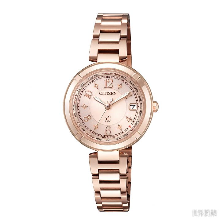 今年女表新款,CITIZEN延续以往基调,以女性多面化的身份为主要概念,推出叁支主打女表款。Hebe田馥甄电视广告配带款EC1118-51W,以粉红金配色做为整支表款的底色。小巧可人的26mm表面,选用超级鈦材质搭配,让整支手表的重量比两颗马卡龙还轻,仅约36g。单面防眩光蓝宝石玻璃镜面,让使用者可以更清晰地判断时间,在使用上也能更能得心应手。表盘中以菱形及数字之间交错堆叠,同时呼应外圈世界时区的设计,代表着女性畅游世界各大城市的时尚生活缩影。