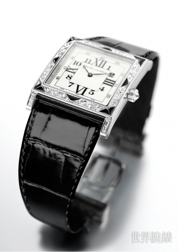 - 表壳:18K白金表带、拋光,尺寸27.50 x 27.50毫米,厚度6.75 毫米,凸起式蓝宝石水晶镜面,内部透明防反光处理,防水深度3巴(约 30 米