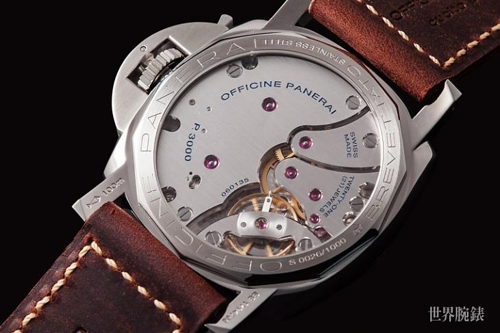 ▲搭载沛纳海自制P.3000手上鍊机芯,拥有两个游丝发条盒可提供腕表叁日动力储存,直径16½法分的尺寸,让人直接从47mm大表径就可认出内载自制机芯。