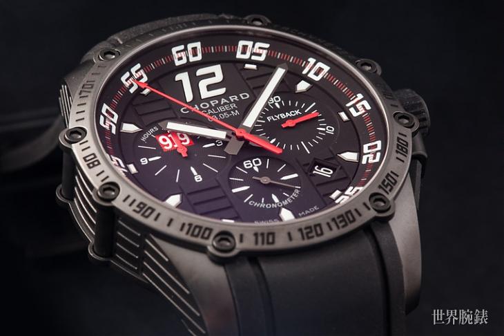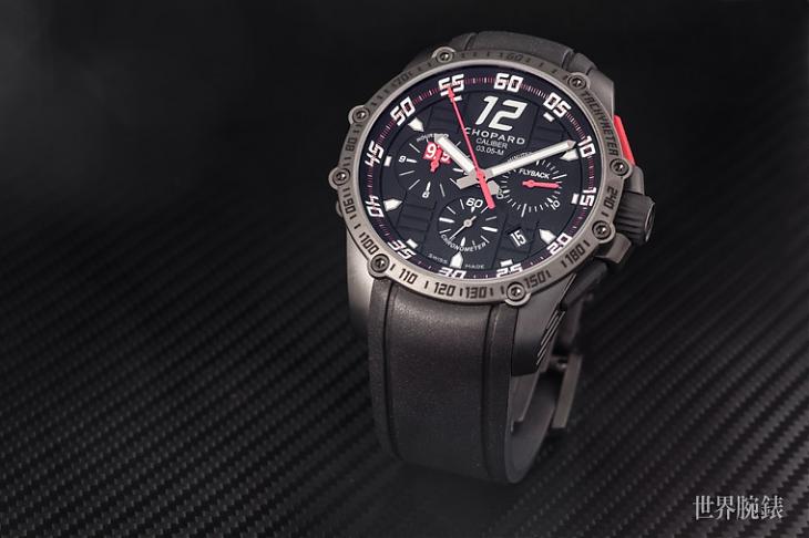 ▲萧邦Superfast Chrono Porsche 919 Black Edition的面盘除了大量运用红黑白色设计,面盘低调的刻痕设计灵感则来自赛车轮胎的纹路,将保时捷919 Hybrid赛车元素淋漓尽致展现。