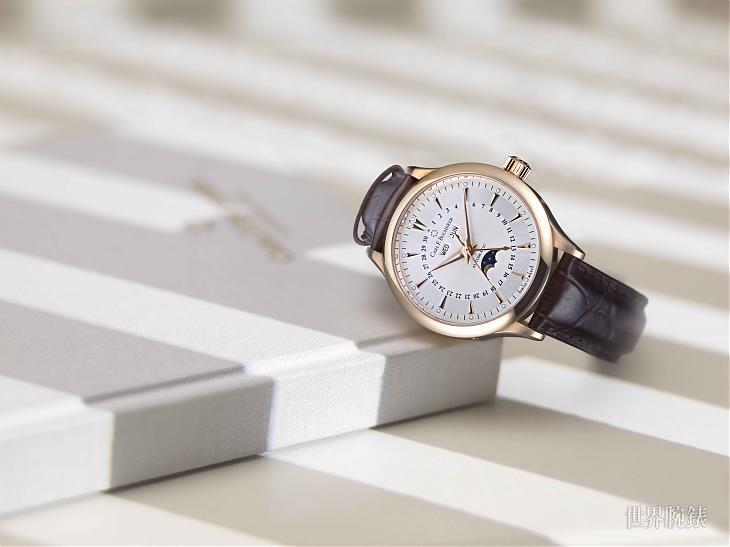 传说月相周而復始的盈亏变化,赋予了月亮神秘而迷人的力量。从来精英人士都憧憬着擷手摘月,一揽浩瀚星海在手的宏图之意;值此中秋之日,一款马利龙月相腕表陪伴你品味腕上岁月的阴晴圆缺。马利龙月相玫瑰金腕表设计优雅,38毫米,厚度10.85毫米玫瑰金表壳与银色表盘及金色时标搭配悦目和谐。即使功能繁复,外观佈局却清楚分明,可见其中的细节巧思;立体梯形时标、修长夜光时、分针一望而知;闪亮的银色月相表盘在炭灰色背景衬托下更觉悦目;拋光表壳、圆润的表针与优质鱷鱼皮表带一气呵成,配上18K玫瑰金表扣,塑造完美的高雅气质,散发迷人风采。