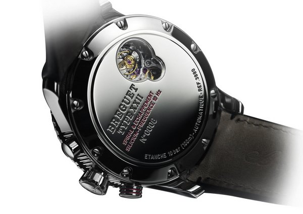 *Type XXII 3880计时码表底盖舷窗,无可比拟的高速运行摆轮与擒纵系统尽收眼底。