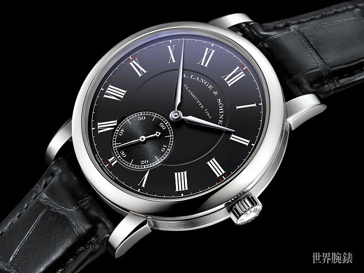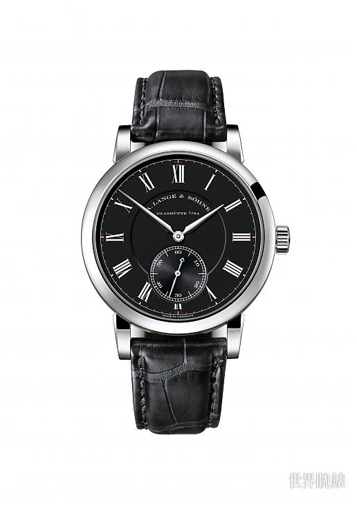 全新表款的表壳以实心18K白金制作,直径为40.5毫米。白色罗马数字和18K黄金镀銠指针与黑色实心银表盘形成鲜明对比。位于15、30、45、60分鐘的小型红色阿拉伯数字,巧妙地为黑白背景的设计增添一分色彩。配以18K白金表扣的手工缝制黑色鱷鱼皮表带,彰显Richard Lange “Pour le Mérite”的独特风格。