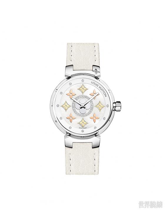Louis Vuitton推出多款全新表款,五只表款,顏色抢眼,设计新颖,并且深具LV特色!首先,Tambour Idylle BlossomTambour腕表,它有着Tambour腕表独特而易辨的形状,而这个形状事实上是向在鼓致敬。而Idylle Blossom系列将Georges-Louis Vuitton 1896年所设计的Monogram花卉演译得栩栩如生,珍贵的花卉以白K金、玫瑰K金和黄K金詮释。整支表看上去纯洁动人,又很是可爱。