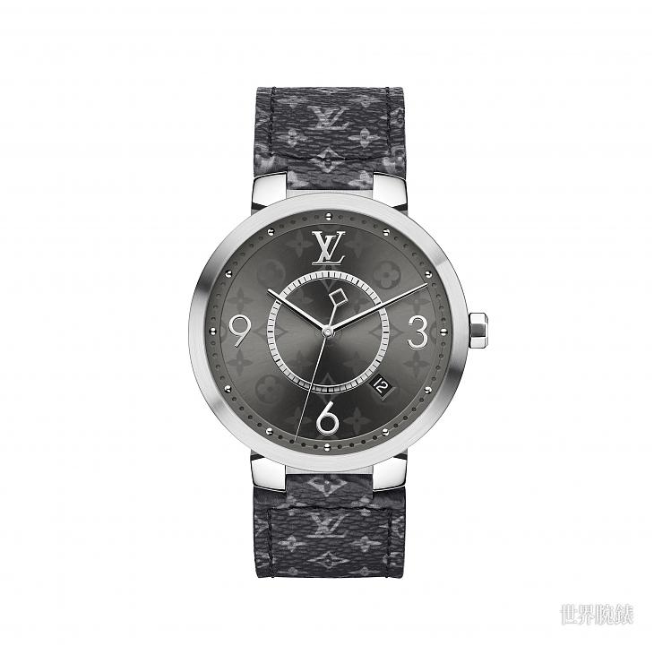 第二只Tambour Slim Monogram Eclipse,採不锈钢表壳,而在它的表盘饰以Monogram花卉纹路,这算是品牌最经典的特色图案了。12鐘位置则以LV标示,又再一次强调了品牌形象。这只表款搭配黑色帆布表带,看上去十分低调。