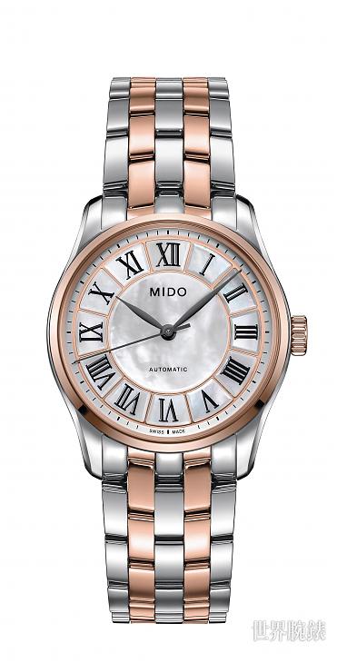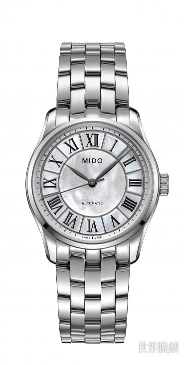 另一款全新的Belluna ll雋永系列珍珠母贝女仕腕表,有着33毫米珍珠母贝表盘搭配放大罗马数字时标,完美展演英国皇家艾尔伯特音乐厅和谐而对称的优雅设计。音乐厅挑高一百叁十五呎的圆弧透明屋顶,在MIDO美度表的詮释下成为开放式的圆形面盘,浓烈的装饰艺术风格则透过数字时标与框饰于时标外的同心圆展露无遗,美度表特别採用精细的独立切割技术,将13片独立切割的珍珠母贝于表盘上完美镶嵌,珍珠独一无二瑰丽而柔美的光线于时光流动时流泻于表盘,欧式浪漫面盘设计搭配不锈钢或玫瑰金PVD表壳,呼应维多利亚建筑华丽风格,展现无懈可击的艺术美学与品味,表款使用80小时动力储存机芯,确保至少叁日的动能储存,功能与优雅外型兼具,无论何时何地都能完美体现出女性的温柔细腻与耀眼风采。