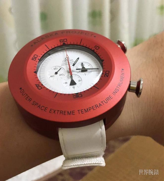 超霸阿拉斯加计画登月表,其红色外壳在起初设计时是想用来保护腕表,在数十年后的现在看来,变成最受瞩目又独特的设计。这款稀有的復刻腕表无论在外型或内装都无可挑惕,不过有一小缺点是其塑料水晶镜面,硬度较低,一不小心就会有刮伤情形出现,不过整体来说我还是挺满意的,如此稀有珍贵的腕表以特好的折扣购入觉得相当值得。