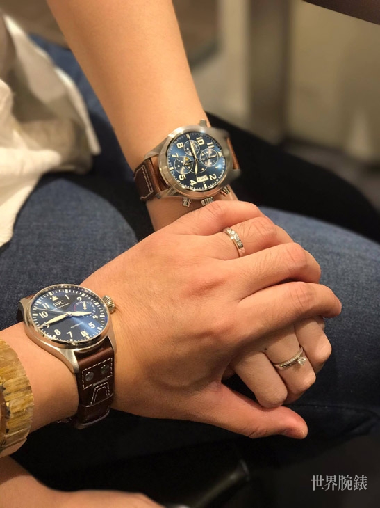 ▲很少有人选择大飞行表当作对表,不过爱老婆的祥哥就是把它凑对了。