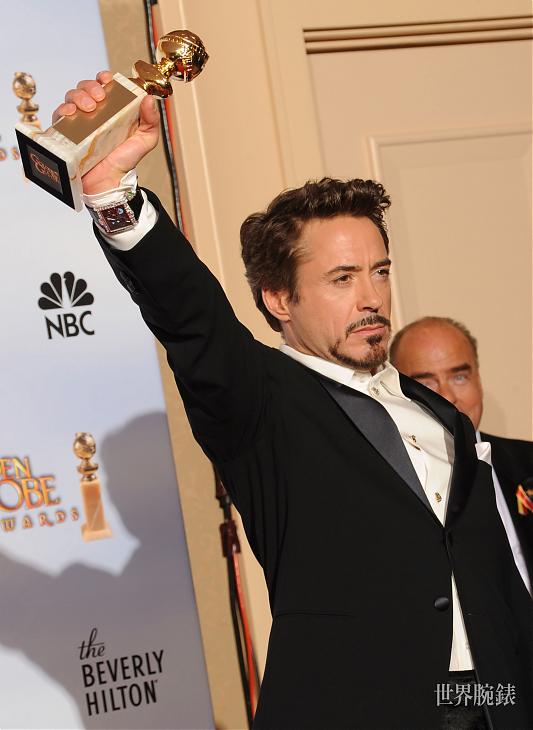 ▲以《福尔摩斯》一片拿下金球奖的同时,小劳勃道尼戴的是HARRY WINSTON Avenue Squared,只是不知这次为何右手戴表?