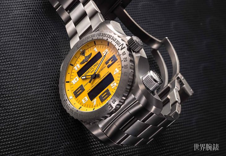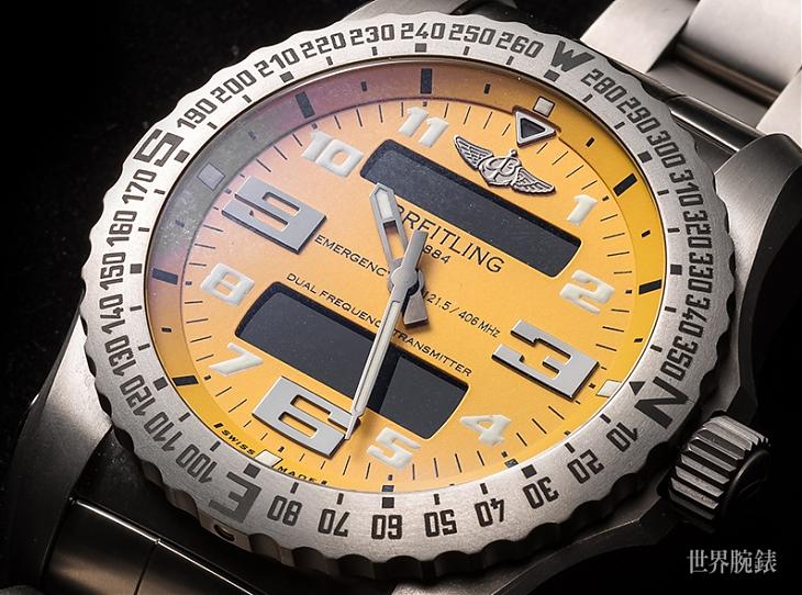 ▲面盘有黄色、橘色和黑色,不过会来买Emergency的人应该都还是比较喜欢亮色系吧。表圈不具备四点金,取而代之的是方位座标,同样可以旋转。