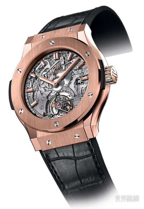 宇舶自2010年首款大教堂叁问陀飞轮手表问世以来,由微机械工程师、制表师组成的研发团队努力不懈,坚持机芯的全面改造和优化。歷经24个月研究和开发,终于完成此款精密多功能手表—完全继承宇舶表的DNA,全部设计、研发、生产工作均由宇舶表完成。这只大教堂叁问陀飞轮也有着十分抢眼好看的外型,它的表壳以18K王金打造而成,散发的华丽气息可说是锐不可挡。另外,透过蓝宝石镜面,HUB8001手动上链机械机芯的陀飞轮擒纵装置和叁问装置也是清晰可见。最值得注意的是新设计的时间设定功能以及经典陀飞轮装置(拥有13.6mm直径框架、每分鐘旋转一周)。