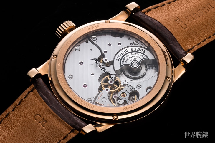 ▲ 表背蓝宝石水晶玻璃上鐫刻罗杰‧杜彼先生签名,为表款增添非一般的纪念价值。