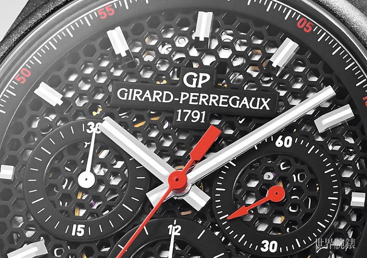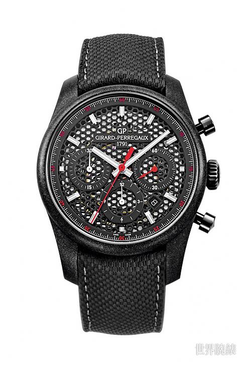 碳纤维、DLC鈦金属材质/GP03300-0122自动上鍊机芯/时、分、小秒、日期显示/计时码表功能/蓝宝石水晶镜面、透明底盖/表径42mm/防水30米/参考价:NT$ 380,000