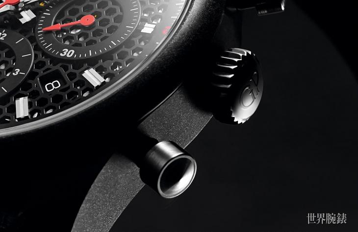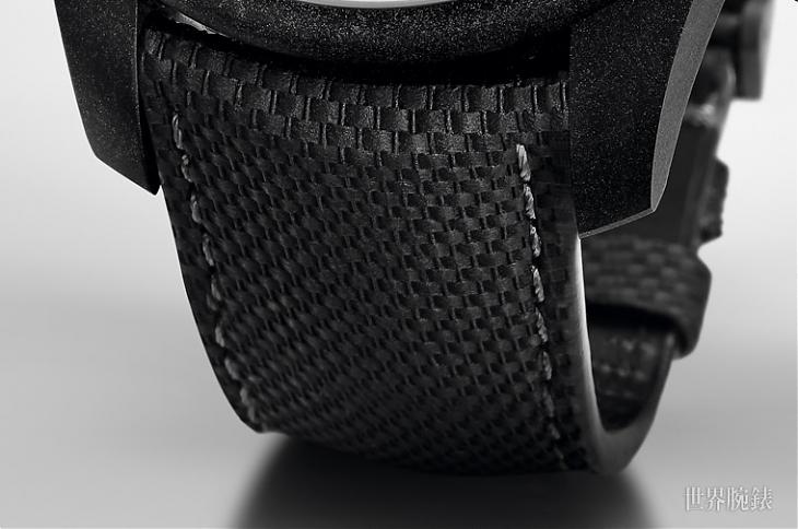 ▲表冠採用鈦金属,而表壳则使用以碳纤维为主的轻盈材质,使得腕表本身的功能性强化许多,尤其表现在抗撞性和整体重量上,使得表友在佩戴上更加舒适。