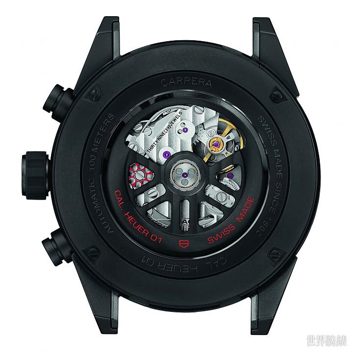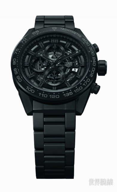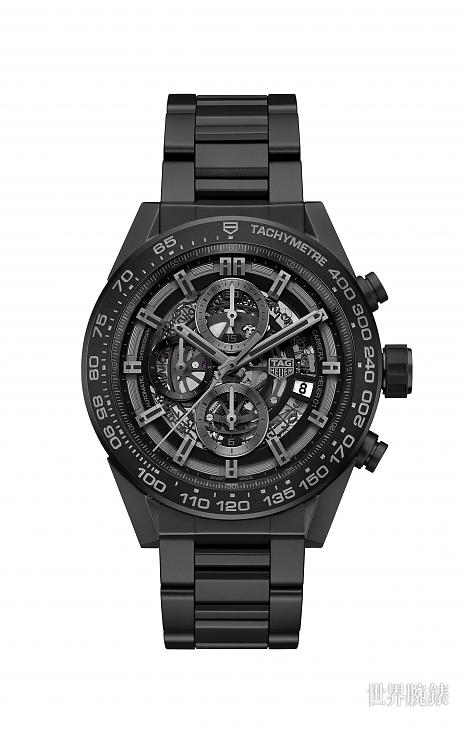 ▲陶瓷材质/Heuer-01自动上鍊机芯/时、分、小秒、日期显示/计时码表功能/蓝宝石水晶镜面、透明底盖/防水100米/表径45mm/参考价:NT$ 214,200