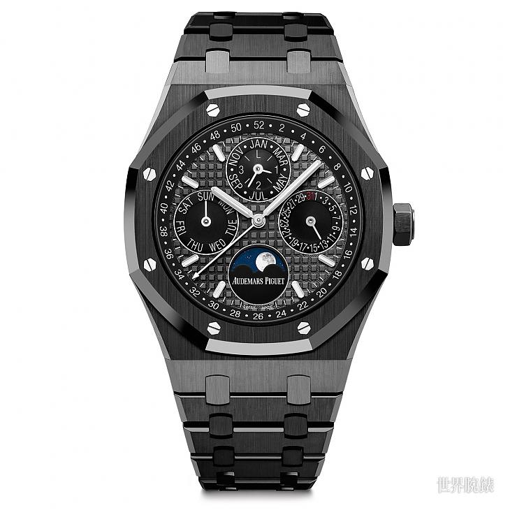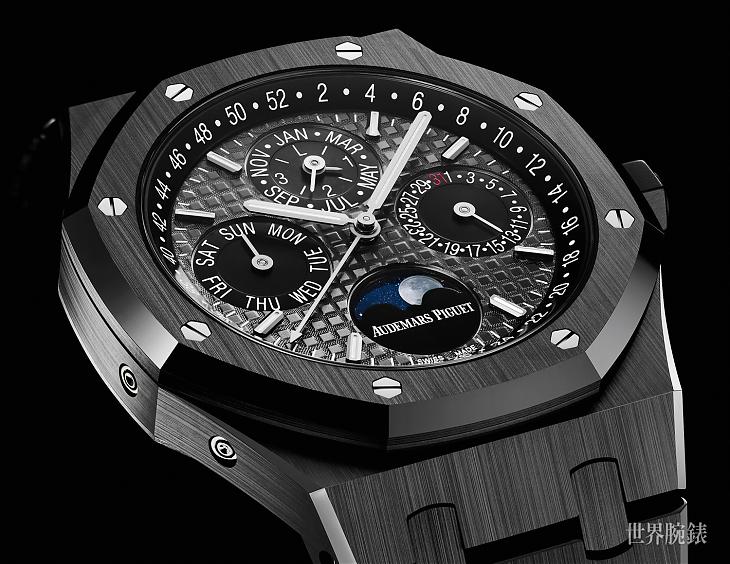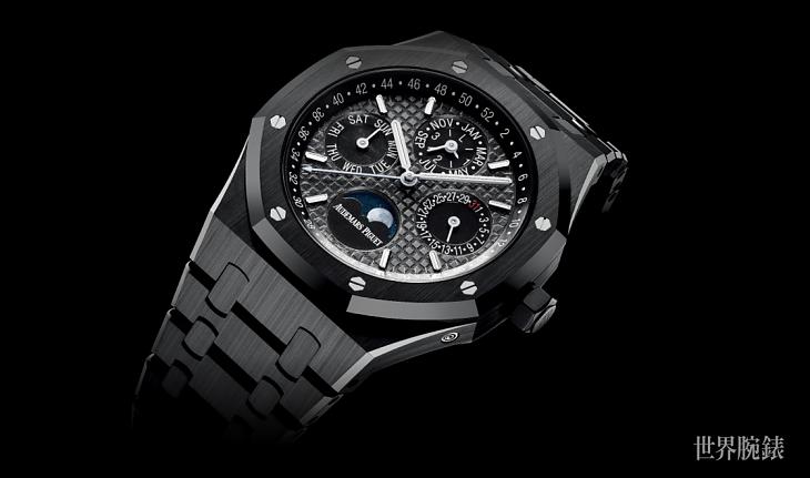 ▲爱彼全新皇家橡树万年历,从表壳到表带都是以黑色陶瓷打造,它的黑色鲜明亮眼,十分吸睛。