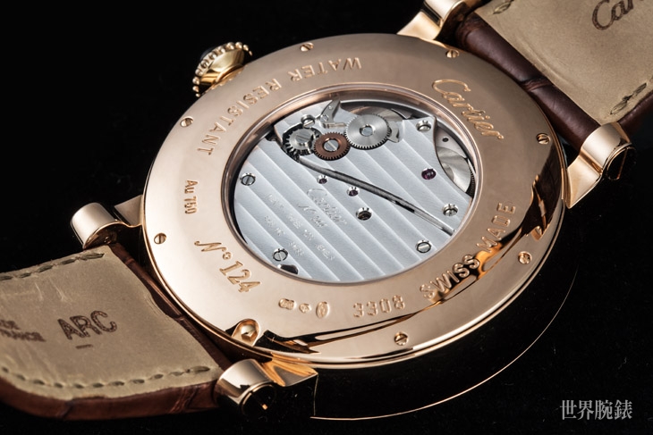 表款以18K玫瑰金打造,双层肩部经过磨砂与拋光处理,不但令表壳精致的轮廓更为突出,同时也能保护多角形表冠免受外力撞击。面盘上的超大罗马数字已是辨识卡地亚的标誌,将此表款的阳刚气概表现得淋漓尽致。