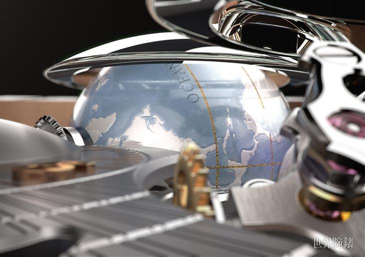 ▲球体地球仪每24小时转一圈,代表每日自转时间,同时其上的地图为芝柏创立时的1791年世界全貌,相当具有品牌特色。