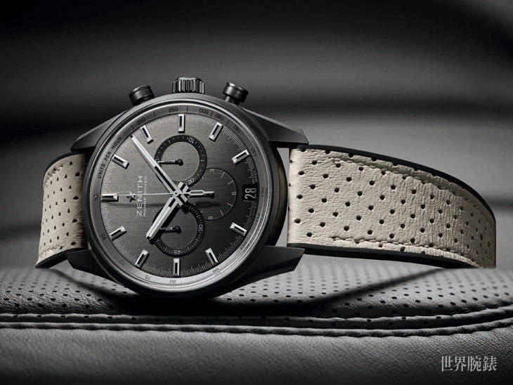 不同于以往的El Primero叁色计时盘的配置,这只计时表的面盘使用深色调,以揽胜现代时尚的内饰设计为精髓,创造出简约的风格。而搭配的表带则是效仿Range Rover真皮座椅内饰的多重选择,有象牙色或蓝色钻孔小牛皮内衬橡胶表带供选择。
