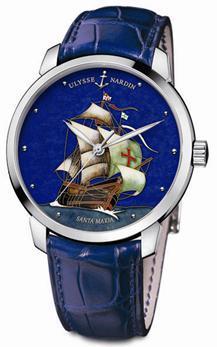 Classico《圣玛利亚号》鎏金限量手表拥有令人惊嘆的外观,当然也要装配一个精准的机芯。搭载 UN-815自动上鍊机芯,瑞士官方天文台认证COSC,动力储存达42小时。Classico《圣玛利亚号》鎏金限量手表与雅典珐琅彩绘系列裡其他手表同样富独创性和制作精美,备有 18K 白金或玫瑰金款式供选择,每款限量发行30隻。「圣玛利亚号」横渡大西洋,自豪地见证着远洋探险,为世界歷史写下重要一页。而雅典的Classico《圣玛利亚号》鎏金限量手表亦为精湛的珐琅工艺作出同样的贡献。