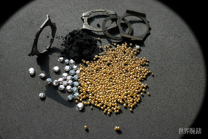 除了钻石之外,世上没有其它材质能够雕琢宇舶的魔力金(Magic Gold),这是获得瑞士贵金属控制中心(Central Office for Precious Metals Control)认证的18K金,也是世上第一个具有耐磨抗刮性质的贵金属,其硬度直逼1,000维氏硬度。(一般K金约400维氏硬度,不锈钢约600维氏硬度)这项独一无二的材质来自HUBLOT位于瑞士尼翁总厂的高科技铸造厂,革命性的专利融合技术,将24K纯金与陶瓷合而为一,既保有18K金成份(75%纯金与25%其它材质),同时兼具陶瓷的高硬度。而被运用到Big Bang表款上可以说是天衣无缝,机械美学主导加上创新材质的搭配,充分展现出Big Bang Meca-10的魅力。