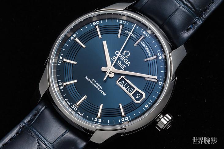 年历表比起动輒百万的万年历表来说,价格上确实实惠许多,且两者的差异主要是每四年遇闰年时年历表需要手动调校时间,加上年历功能也属于复杂功能之一,不想买大叁针又喜欢面盘多一点花样的玩家,就蛮适合入手一款年历表的,本次所介绍的OMEGA De Ville Hour Vision年历表,算是眾多品牌中较出色的一款,因为OMEGA的招牌同轴擒纵机芯加上硅游丝,让整枚机芯的耐用度更升上一个层级,不仅具有瑞士天文台认证,机芯本身更具备抵御15,000高斯磁力的本领,所以就耐用度来说简直没话说。至于外型,OMEGA则做了些微的更动,面盘採用当下最夯的蓝色面盘,De Ville系列常见的罗马数字时标则被立体柱状时标取代,减少了面盘的读时繁复性,却又巧妙地在小时显示处做了环状曲线,让整体视觉看来整只表的质感细致许多,耐用并兼备现代化的俐落设计,是目前De Ville系列中蛮突出的一款。