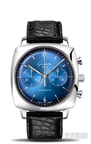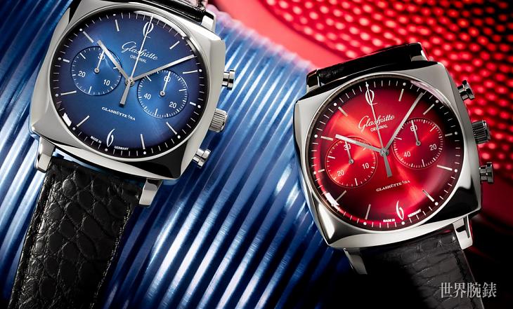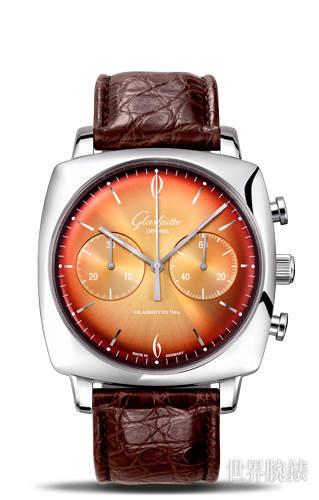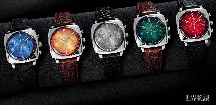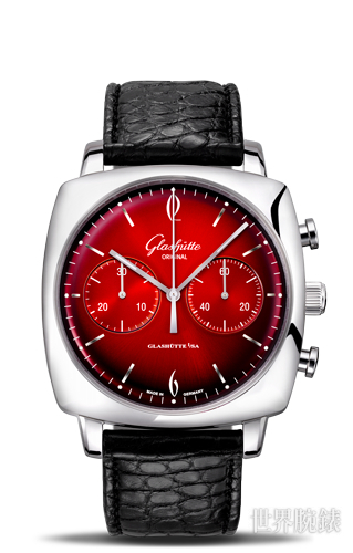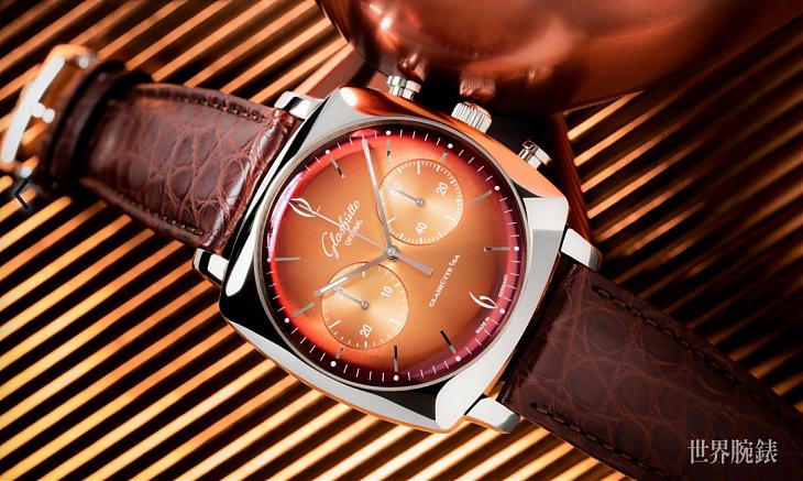 面盘的部份,这五款计时码表皆搭配独特的彩色面盘,腕表也是採用来自六○年代的原创工具和纯正工艺打造,并且要经过极其复杂耗时的制造流程。因此,格拉苏蒂原创的专家级工匠们对每一个异常繁复的步骤都倾注了许多的心血,尤其是在彩色漆面的运用上,更是下了极大的功夫。正因如此,才能实现从发亮中心到渐暗周边区域精确无误的色调和色彩变化,而这变化通常被称之为「渐变(Dégradé)效果」。