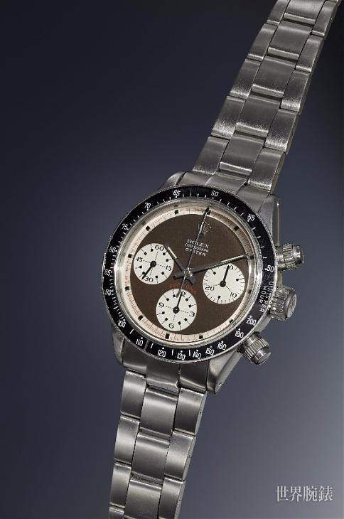 这只拍卖史上最高价的Daytona生产于1969年,不锈钢表壳,原本的黑色面盘在漫长时光中蜕变为棕色。Ref. 6263据信是Paul Newman的型号中拍卖价值最高的一款,其中黑面更由于数量稀少,身价更为不凡。