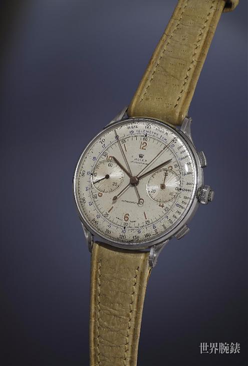 一般不做复杂功能的劳力士,1942年罕见地打造了这款不锈钢双追针计时Ref.4113,44mm大口径,是劳力士第一款、也是唯一一款双追计时码表,一共只生产了12只,编号051313~051324,现身世人眼前的仅有8只,其中以这只051314成交价最高。这些表款未曾公开发售,据信是与车赛相关的纪念表款,只有当时的赛车手和车队老闆获得。