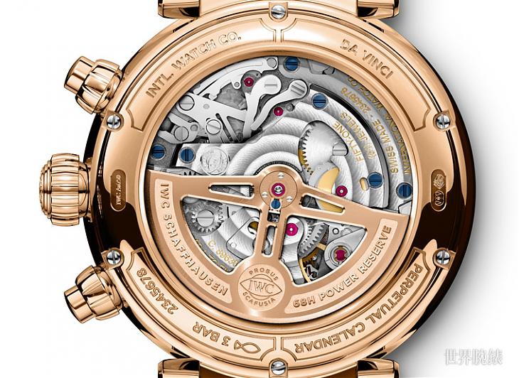▲新机芯以IWC自制的89360为基础,由于万年历模组是装在面盘侧,所以从表背看到的几乎就是89360的样子。计时机制採用导柱轮和水平离合,并具备飞返功能。
