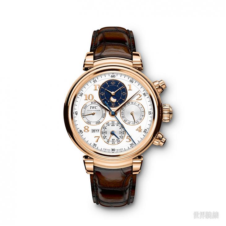 2017年IWC万国表在睽违十年后终于再度对达文西系列进行了更新,这次改款在设计上将表壳由酒桶形改回了圆形,产品面的部分也对系列的定位做了微妙地调整;这款计时万年历在表展前就已经先行曝光,但儘管正式开展后又有逆跳日期计时陀飞轮这等大表发表,有鉴于计时万年历之于达文西系列无可取代的特殊渊源,这款仍旧被不少人视作是2017年IWC的压轴之作。
