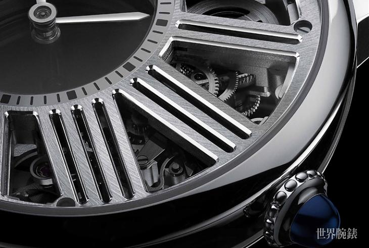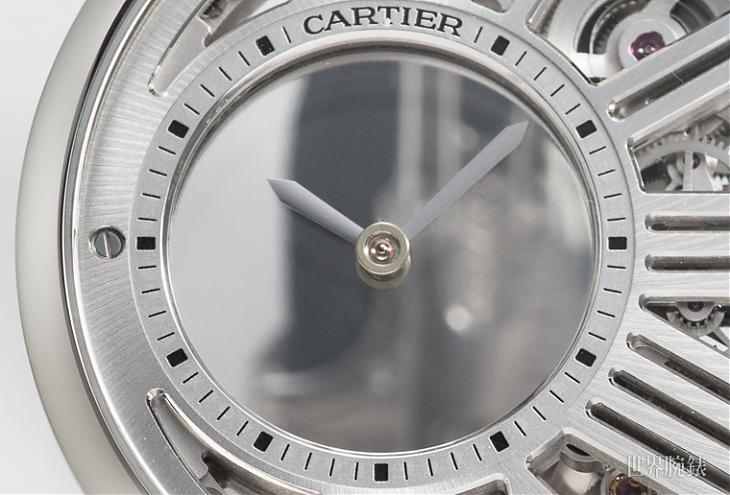 ▲看似悬浮于表面的时、分针,实际上是透过两片蓝宝石水晶玻璃完成的装置,由于绝美的视觉呈现,而成为卡地亚独一无二的品牌基因。