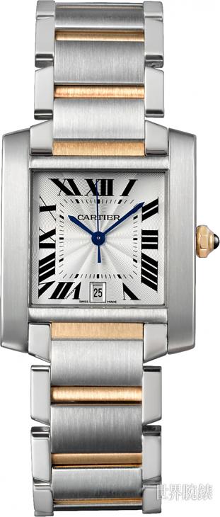 1996年诞生的法国坦克让原型的坦克腕表外型变得更圆滑,淡化处理的直角呈现出和谐的风貌。Tank Francaise的表壳和表带在视觉上连为一体,表带的弧度除了充分弥补了因为採用方形表壳所失去的圆周,它所配备的金属表带的锯齿状表带关节,更意象式地展现出坦克履带的感觉。