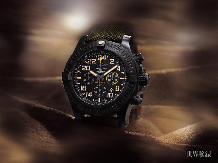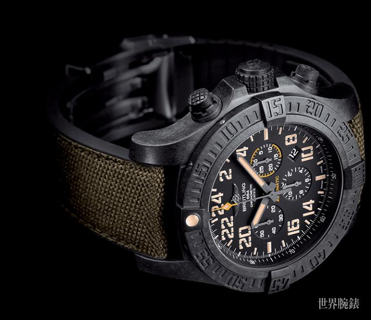 ▲新版时标与指针的夜光涂料改为米黄色,比起前作多了些歷练感,此外此款最有特色的Breitlight®材质表壳依旧是其硬派个性的主要重点。