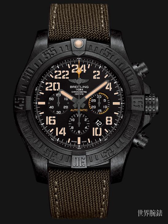 Breitlight®材质/B12自动上鍊机芯/时、分、小秒、日期显示/计时码表功能/蓝宝石水晶镜面/防水100米/表径50mm/限量1000只
