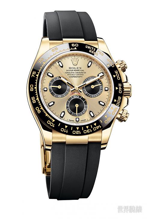 劳力士在巴塞尔鐘表展上发佈全新Oyster Perpetual Cosmograph Daytona(蠔式恒动宇宙计型迪通拿),而且一次推出叁种版本,分别为18ct黄金款、18ct白金款和18ct永恒玫瑰金款。上述叁款全新Daytona皆搭配创新Oysterflex高性能橡胶包覆金属片表带,并配备由劳力士专利的黑色陶瓷Cerachrom外圈。这项最新设计融合了高科技与非凡美学,同时向这只传奇计时表的卓越传统致敬。最重要的是,全新Daytona的黑色外圈也令人想起1965年版的黑色塑胶玻璃字圈。