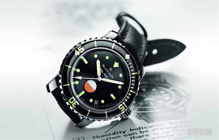 ▲1950年代宝铂刚开发出五十噚潜水表不久,品牌为了强化腕表的性能与安全性,因而发想出将湿度指示融入腕表的设计,这便是歷史经典款五十噚MIL-SPEC 1的由来,2017年品牌以此为蓝本发表復刻款式。