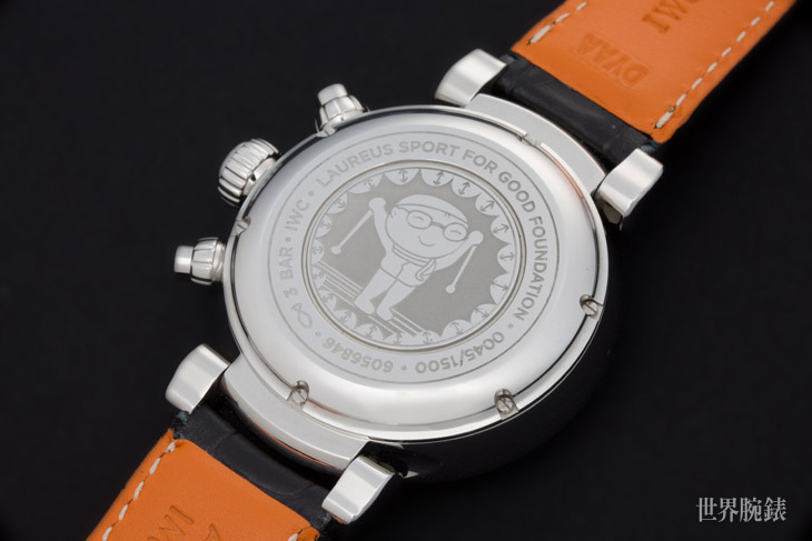 ▲此次IWC选择在达文西计时码表「劳伦斯体育基金会」特别版中的表底盖鐫刻侯燁的得奖作品。