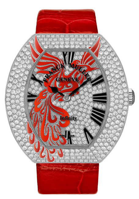 FRANCK MULLER最新大师力作是Giga陀飞轮九日链手表。搭载手表上最大的陀飞轮,表径20毫米。为确保提供手表长达九天的动力,有别于传统手表只装佩一或两个发条盒提供动力,Giga陀飞轮九日链手表装佩了四个发条盒,并以上下两两串连的方式相互连接,形成两对发条盒一起运作的方式。这样的设计使得在上链过程中能更快速有效的储存动能,同时更能在释放能量时提供稳定的动能驱动手表。酒桶形表壳备有18K 黄金、白金、玫瑰金或鈦金属材质。FRANCK MULLER以令人惊叹的研发创意与制表技艺,证明其于复杂制表领域不断引领超前的坚强实力。Infinity Phoenix为FRANCK MULLER以极具诗意的方式,传达出有别于西洋文化所詮释的东方时间意念。独特酒桶型设计的Infinity Cintrée Curvex,衬托出表盘上巧妙地描绘象徵着宏伟尊贵的瑞鸟 ─「凤凰」。