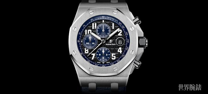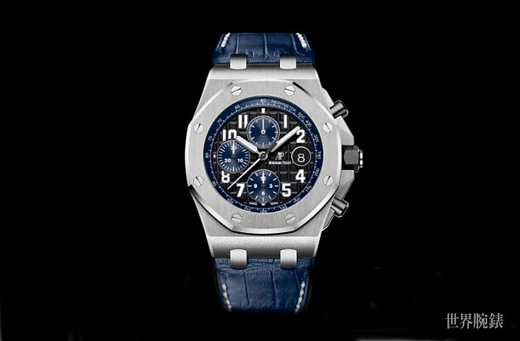 ▲AP全新ROO计时码表以标誌性的不锈钢材质及八角形表圈,加上黑蓝配的组合,打造万分帅气的运动计时表。