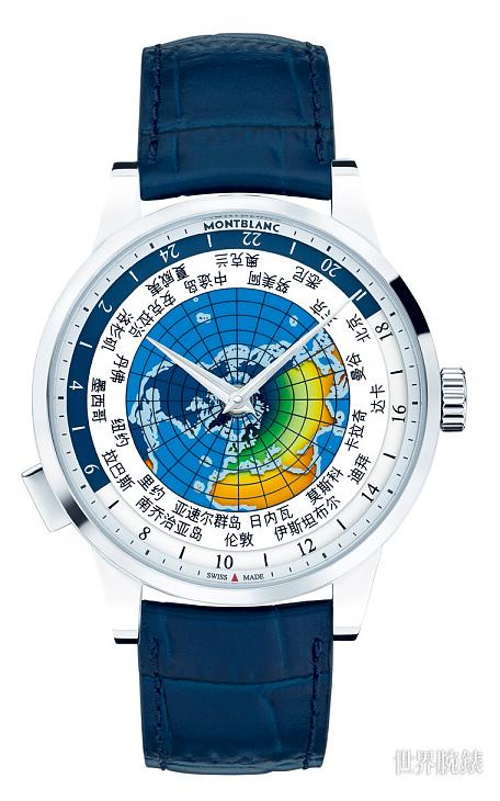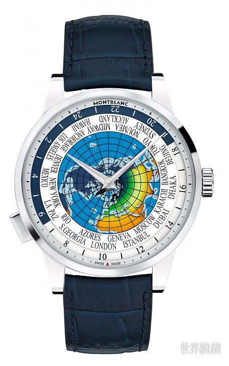 为了体现联合国儿童基金会在世界各地的公益足跡,并展现实用功能与创新设计,万宝龙选择以Heritage Spirit传承精神世界时与联合国儿童基金会合作,此款腕表以拉丁文Orbis Terrarum命名,意思为「地球」,搭载万宝龙研发之世界时区功能机芯,以简便易懂的方式显示全球24个时区。这只特别版腕表的面盘採多层次设计,蓝宝石水晶玻璃表面採用以北极为视角的世界各大洲图案设计,并标示24个城市代表世界各个时区,蓝宝石水晶玻璃表面以联合国儿童基金会总部所在之日内瓦为UTC+1时区的代表城市,以示敬意。面盘以浅蓝色代表海洋,映衬出世界各大陆的轮廓,其次是日夜显示面盘,以深蓝色代表夜晚、渐层黄绿色代表白天;此外,此面盘也配置24小时环,用于指示世界24个城市的时间。中央时针与分针所指示的时间为6点鐘位置之红色叁角标誌所指示的城市时间,佩戴者可透过面盘外围的24小时环得知世界其餘时区城市的时间。