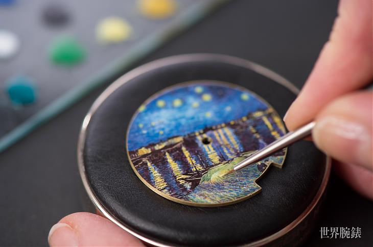 积家珐琅大师麦塞尔曾说过:「当岁月的痕跡悄然爬上机芯和表壳,唯面盘宛若昨日,色泽鲜明、娇丽依旧⋯⋯」,这说明了品牌为何矢志重现这门古老技艺的原因。常言道:「腕表,就是腕上的艺术品」,腕表是艺术,妆点其上的珐琅,更是人类的艺术遗产,因此将珐琅结合鐘表,其面临的挑战,不仅仅是技术层面的,更是艺术创作面的范畴,而要对名画进行临摹,更关切着是否能着实地展现原着的精神,每只皆耗时百餘小时,积家曾与荷兰阿姆斯特丹梵谷博物馆携手推出多款梵谷腕表,向梵谷致敬之餘,更将珐琅微绘再次以艺术的形式,重现其璀璨风华。