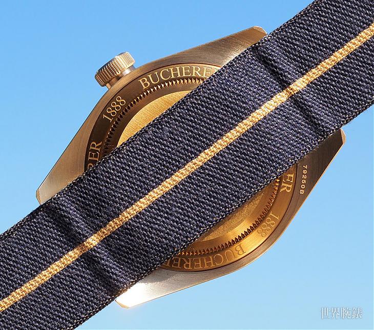 虽说这只特别版的技术层面与2016年的青铜表没有差异,不过从外观上来看,可就有着截然不同的样貌与风格了。一如前言所说,Heritage Black Bay蓝色特别版採用蓝色面盘,深邃的蓝面与青铜材质的组合有着特殊的气质,让人一看就很心动。不只面盘採用蓝色,这只特别版腕表的表圈与表带也都是选用蓝色。整体而言,它散发着别具一格的气韵,已可预见未来的高人气。此外,在底盖部分也鐫刻了Bucherer表店的Logo以作纪念。