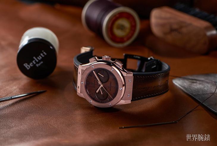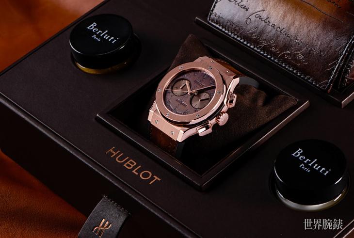 2016年宇舶与巴黎知名皮鞋品牌BERLUTI推出Classic Fusion Berluti腕表,旨在为为了庆祝BERLUTI成立120週年。来到2017年,宇舶延续这项跨界合作,再度推出全新Classic Fusion Berluti计时码表,一共两种版本,分别为Scritto全黑款以及Scritto王金款。