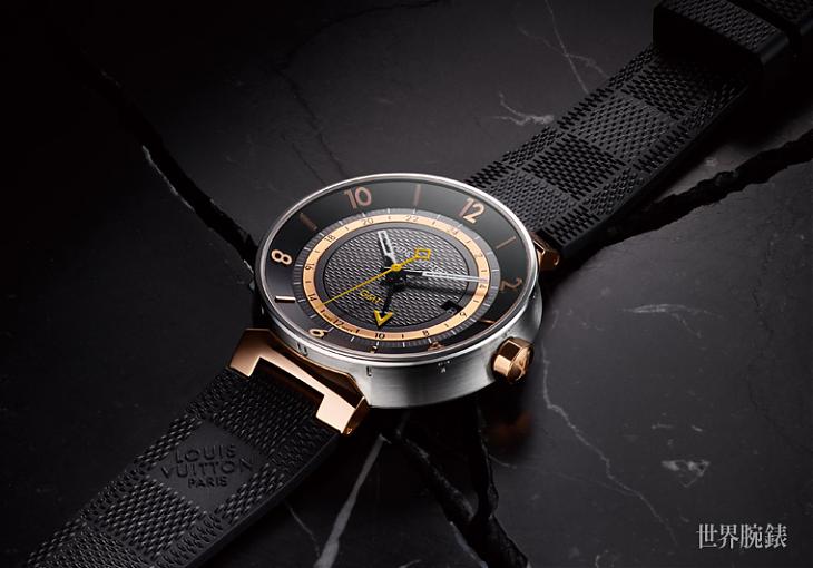 其中Tambour Moon GMT承接2016年数款品牌作品如Voyager、Fifty Five都有的两地时间功能——这也是最能突显路易威登本身旅行文化基因的显时机制,此款表壳由不锈钢与玫瑰金交织成多种版本,共同特色则是面盘内圈的装饰纹路隐隐有几分Damier Graphite布料的熟悉感,而採用24小时制的两地时间显示对于商旅人士来说相当便利。