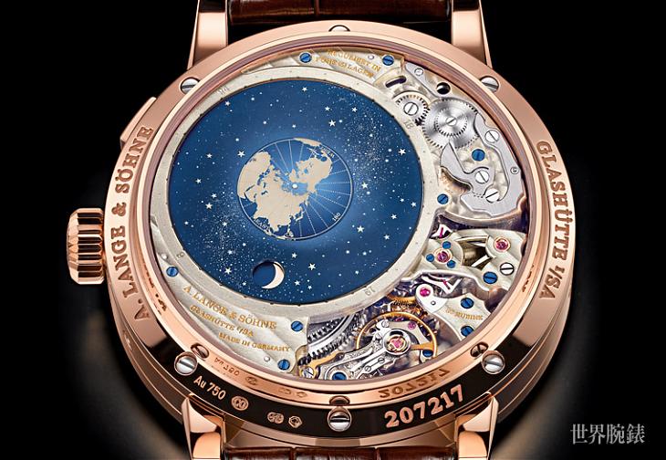 18K玫瑰金材质/L096.1手动上鍊机芯/规范式时、分秒显示/万年历功能/表背日夜轨跡月相显示/动力储存显示/蓝宝石水晶镜面、透明底盖/表径45.5mm/参考价:NT$ 7,182,000