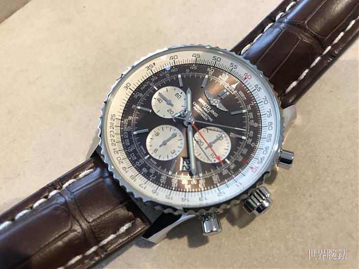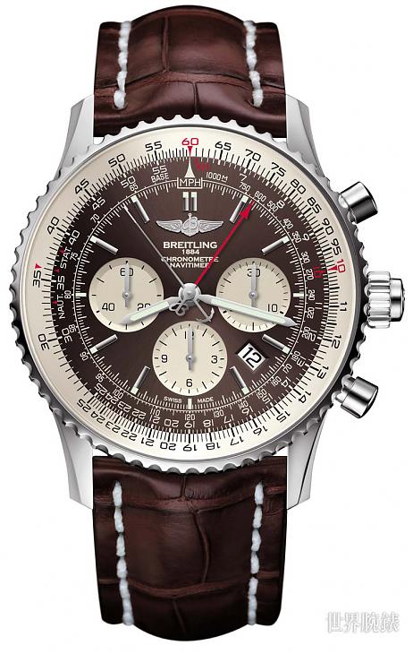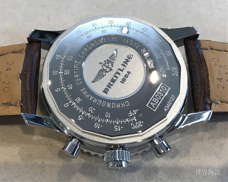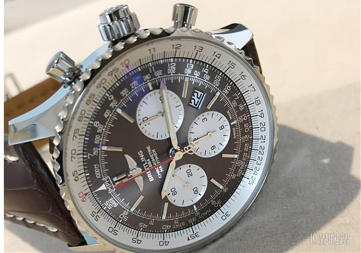 ▲除了多了一根针一枚按把,表款看起来跟一般的Navitimer实在很像,或许这也是他们为什麼要选择45mm这个特殊表径的缘故(既有的Navitimer只有43和46mm两种尺寸)。